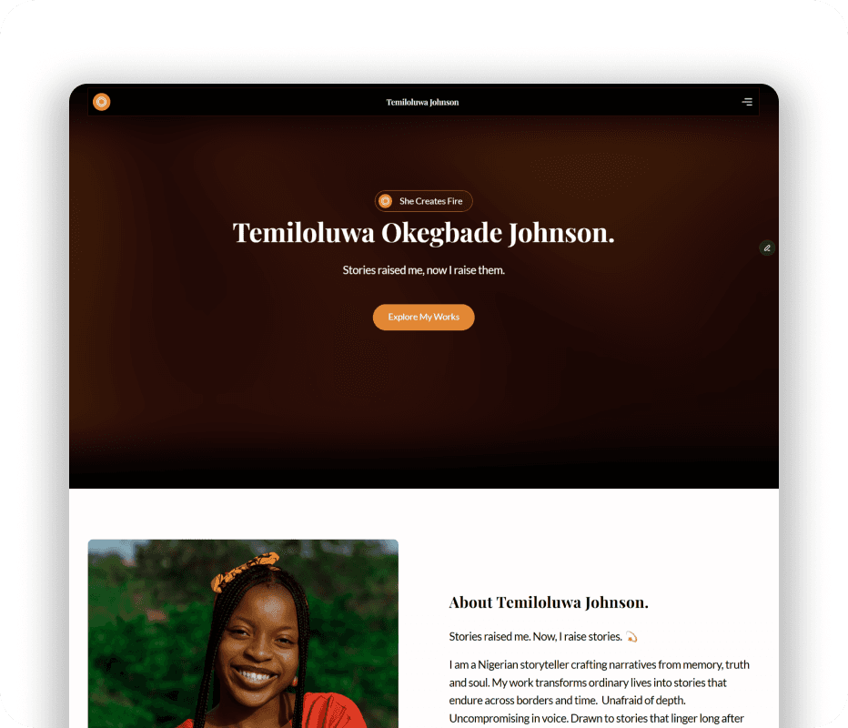 Hey there! I’m Awe Ebenezer (The Creative), a freelance web designer and developer passionate about creating modern and user's interactive websites and powerful digital experiences.